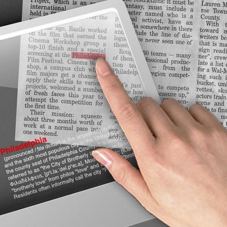 This is a concept ultra-connected device that incorporates a camera/scanner, GPS and Internet connectivity, literally putting a world of information in the palm of your hand. Self-guided tours for prospects, neighborhood guides for new residents, an instant interface between architects and contractors ... something like this has SERIOUS potential across multiple aspects of our industry.
